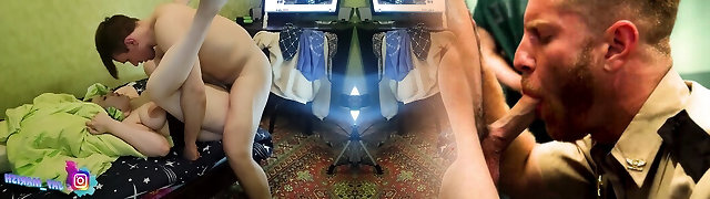 Thirsty russian teenage gets railed doggie-style on her bed and then pounces on her boyfriend's beefstick and starts riding it