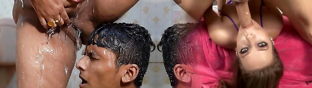 My stepmother trains me how to shower properly, she soaps me, takes my penis and puts it in her honeypot