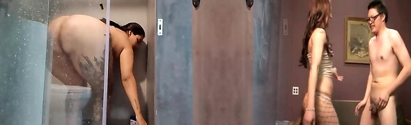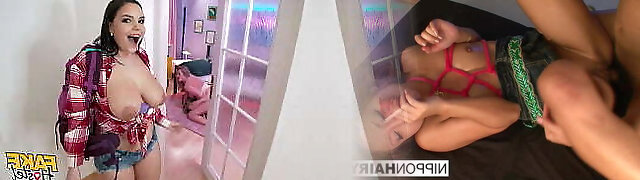 Fake Hostel - after edging with two curvy chicks a studs pulsating balls shoot a waterfall of cum