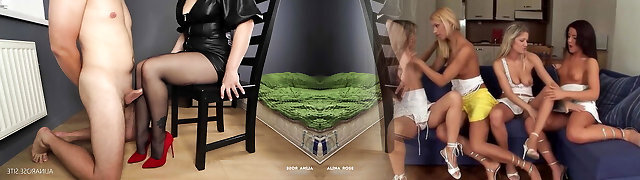 Female Domination strapon pegging. Dominatrix porks a slave in a chastity belt in the ass. Great strapon session