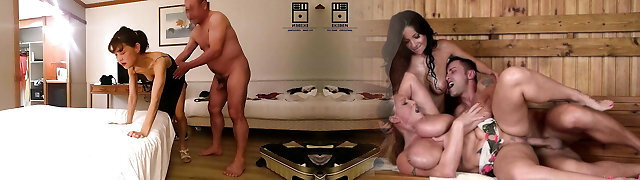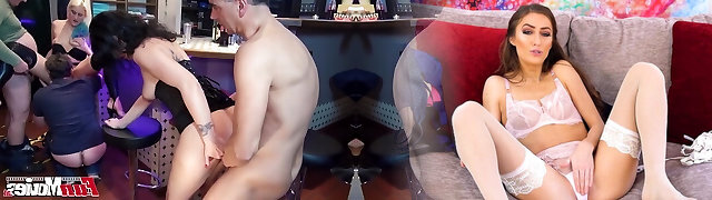 sechs schwingende hausfrauen übernehmen das örtliche gasthaus für eine sexparty mit dicken titten und dessous. vollbusig !