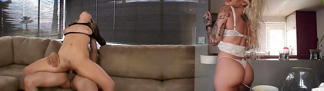 GotMylf - Busty Milf In Cool Lingerie Ryder Skye Gives Young Dick A Dirty Blowjob In The Kitchen