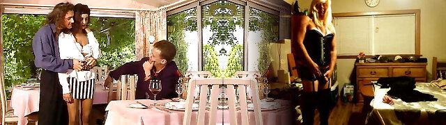 2 butlers start an anal threesome with their blonde milf boss in which they Double Penetration and creampie her 32:44