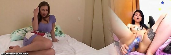SHY GIRL made a HUGE SQUIRTING, she gets really Insatiable Screwing her PUSSY with a SEX MACHINE!
