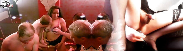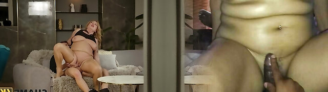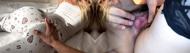 Close-up creampie and home sex of a Russian couple. A slender blonde with a uber-sexy donk in short shorts and a hairy pussy fucks a fat old guy and gives a blowjob. Fetish.