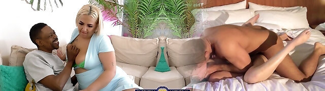 There is only one bed in this palace, so MILF, her stepson and his girlfriend will have to lie down in it together