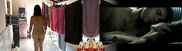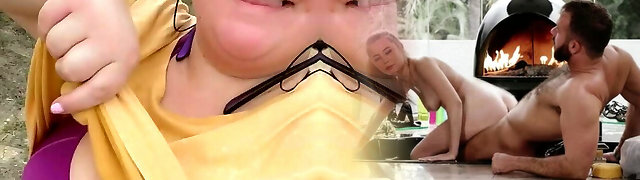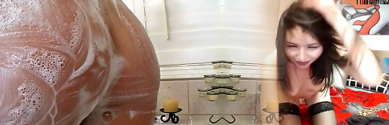 Stepsister noticed how her stepbrother jerks off his fat cock in the shower, she is shocked, he has a very big dick, she is excited, this girl has big natural bra-stuffers, she is bare, she likes to wank a big fat cock and see how the guy cums