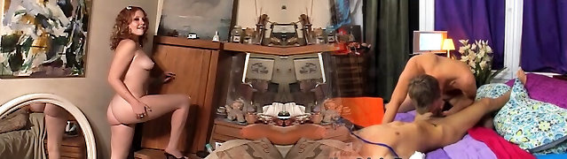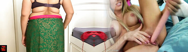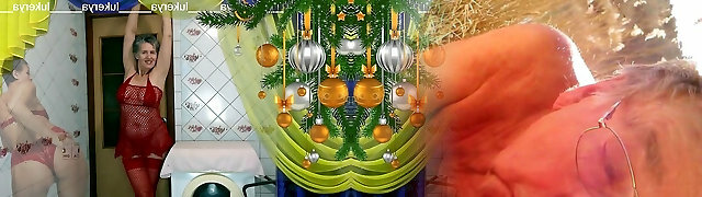 Super-hot housewife Lukerya brings a festive mood showing off red lingerie with flirting on webcam.