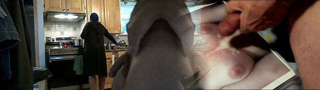 I caress him as I masturbate to moist my pussy and then rub it against his cock until it ends with a stream of cum