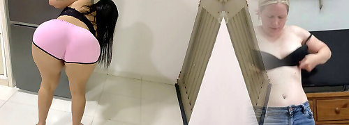sorpreso a cambiare la sua biancheria intima, sorprendo la mia cameriera con la sua figa stretta cameltoe