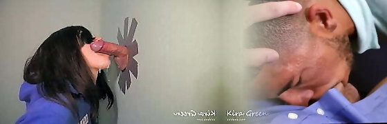 gloryhole, pompino sciatto, gola profonda, bocca di sperma, succhiare dopo cumming-amateur kira green