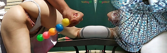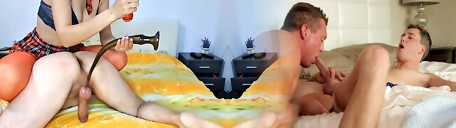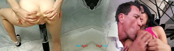 estremo giocattolo anale inserimento. stepsister spingendo un 45 cm enorme butt plug profondo nel fratellastro & #039;s culo grasso