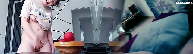 college stunner gioca con il suo carnoso battenti e gargarismi cazzo durante online zoom classe