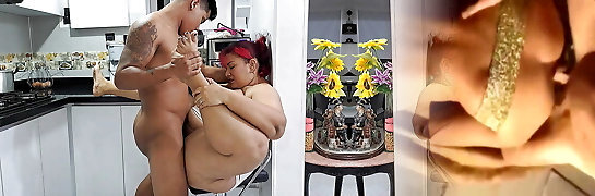 Marie Olsen And Victor Palmas - Mature Female Stands With Her Butt In The Air And Receives Her Stepsons Thumbs And Tongue