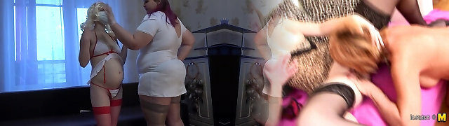 Milf came to the reception to the nurse and got an orgasm from fisting, a bbw doggy-style shakes beautiful booty, lezzies POV.