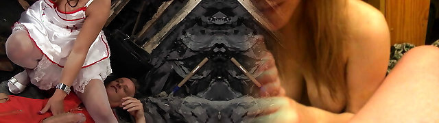 Red-haired nurse in stockings fucks fat cunt and anal. BBW shakes a phat ass and gets rectal orasm.