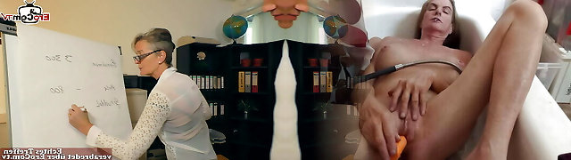 Going to work in a blouse, skirt ,stockings and heels. Prepped for my younger boss to probe my mature boobs, ass and bald cunt.