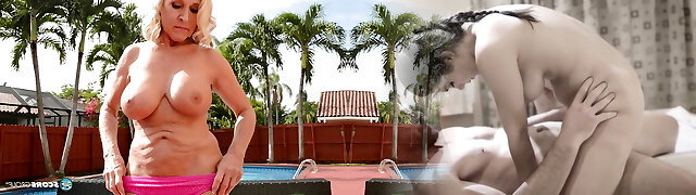 Horny outdoors romping by the pool with horny MILF Elle McRae