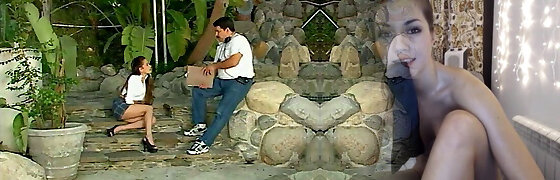 Inked Latina getting freaky by the pool