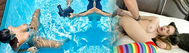 Stepfather teaches babe to swim and accidentally sticks a knob in her pussy underwater