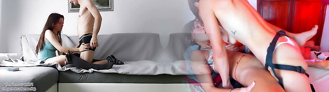 The sister-in-law, playing with the fat manhood of the brother-in-law, fucks from behind.