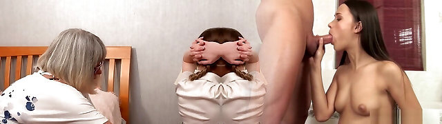Filthy Step Fathers Snoop On Their Stepdaughters And Catch Them Passionately Kissing Each Other