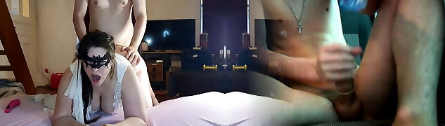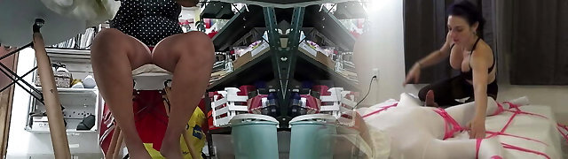 Mature bride with a fat ass, huge globes at a home photo shoot. Chubby MILF in veil, sexy lingerie backstage. PAWG behind the scene