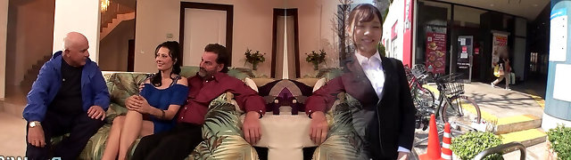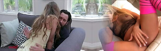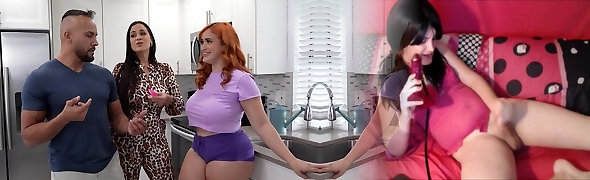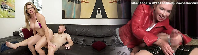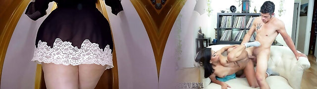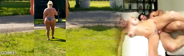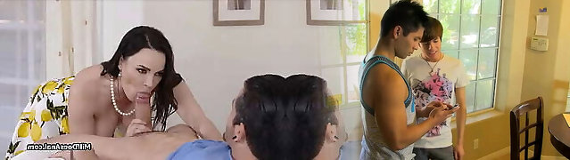 Step-mother fucks delivery fellow after surprising him as an internet wanker, before her husband's arrival