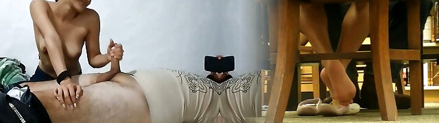 The best lubricated handjob cumshot on good-sized cock stranger by a sexy girl Milf beautiful tits sweetannabella