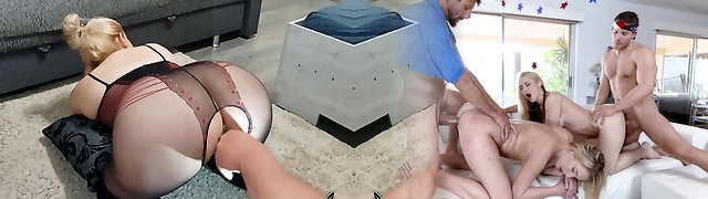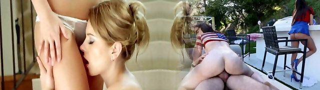 Big Tits Big Booty Super Hot Blonde MILF invites the Skinny Small Tits Baby Sitter into a 3 Way With Wild and Horny Sex