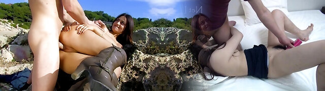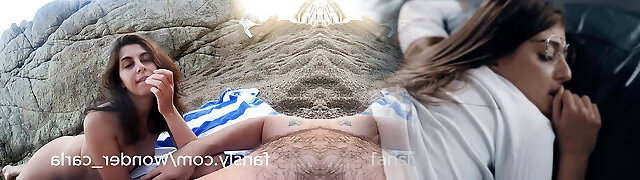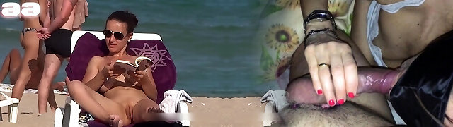 Exhibitionist Wife 60 - My pal Anjelica gets her shaven pussy FINGER FUCKED IN PUBLIC on a Nude BEACH by a VOYEUR!!!
