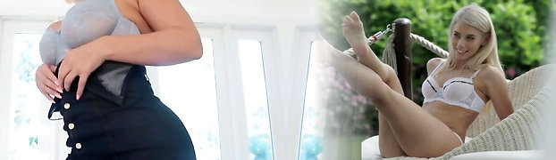 Sexy light-haired teeny gets raw doggystyle sex and missionary pounding from various huge dicks