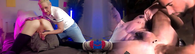 Jaw-dropping Dominatrix session. FEMDOM PEGGING slave with huge strap on dildo, ass fuck, butt plug, handjob