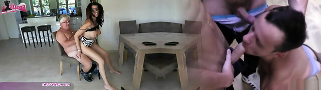 Hot mother masturbates next to her sonnie's friend while he witnesses porn with virtual reality glasses