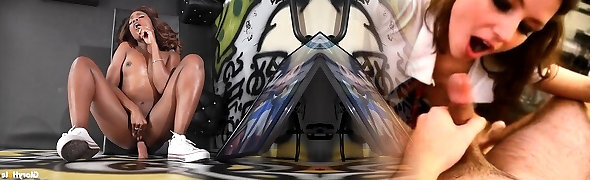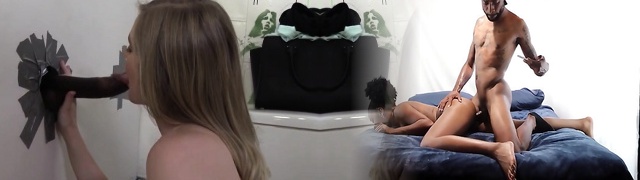 Yam-sized titted woman, Danielle Derek sucked and fucked a rigid, black cock through a gloryhole