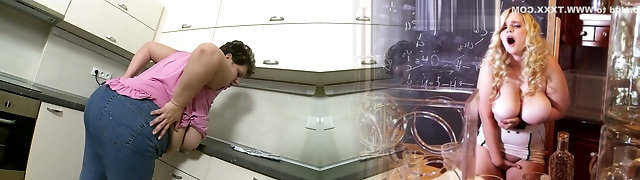 maturo bianco bbw casalinga in denim e viola camicetta in cucina