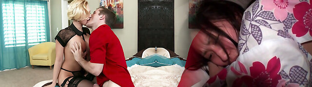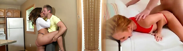 Surprised by horny stepmother in full masturbation she gives me a supreme blowjob and then rides my stiffy until it drips, In