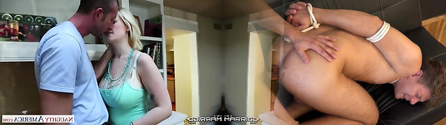 scorching American blond teen (18+) with small bra-stuffers gets her backdoor busted by big white dick