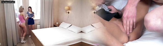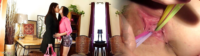 Trying out the brand fresh vibrator on their lesbo shaven pussies before they fuck each other silly