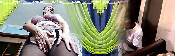 Sexy Lukerya guzzles coffee on the washing machine and flirts hotly, switching clothes in front of fans.