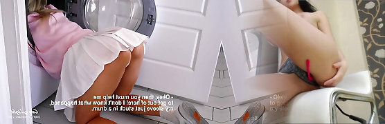Caught My Stepmom She Tries To Put Clothes In The Washing Machine - Sizzling Ass Milf Housewife Nailing And Creampied