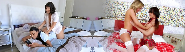 rich stepmother entices her beautiful stepdaughter and gobbles her wet pussy and massages her huge breasts