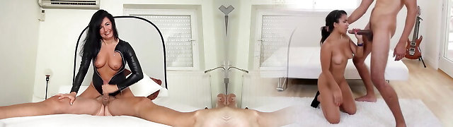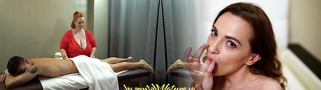 Granny masseuse Arwen wears sexy red lingerie, she started petting her client'_s cock that gets thicker every time she strokes it.