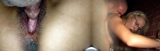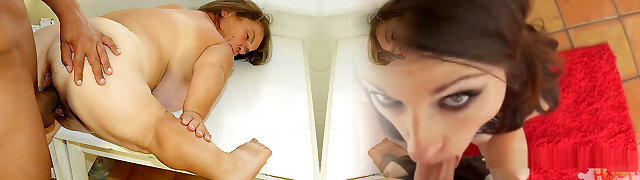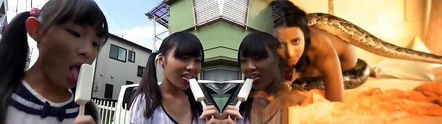 Kinky women with ample assets are having a threesome with a horny midget and deep throating his dick