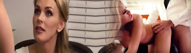 Lesbo Blondes Bring In Their Manager For An Office Threesome After Getting Caught Licking Pussy