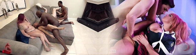 Lesbians Annika and Shyla have orgies with enormous cocks