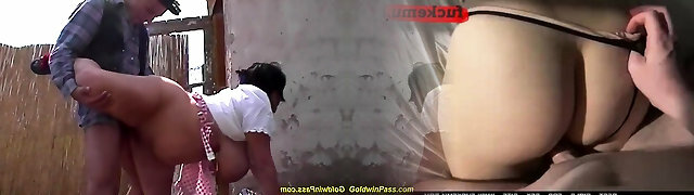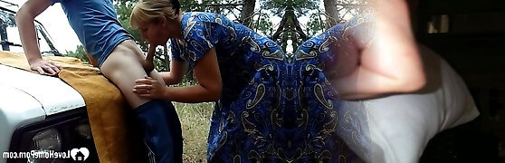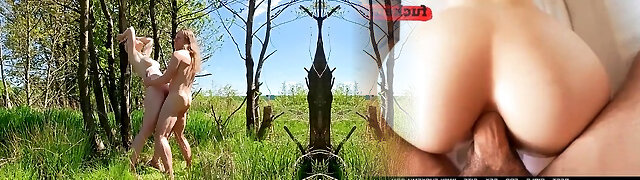 Scandinavian Light-haired Cougar Is Fucked In Standing Missionary Up Against A Tree. She Gets A Huge