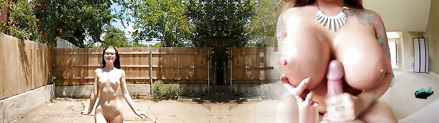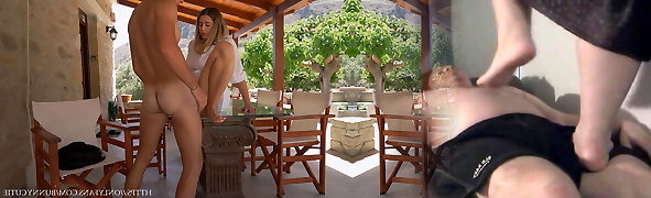 A man showed a dick to his new killer neighbor, he jerks off a man meat in front of her, she is excited in shock and wants to touch his ample spear and masturbate him