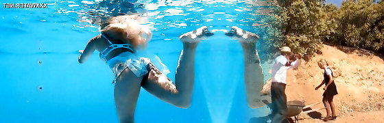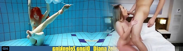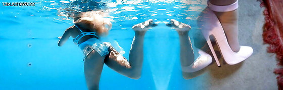 Hot teenage Diana in fishnet stockings underwater