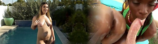 Danni Rivers takes on a lagre ebony dick in amazing sex by the pool